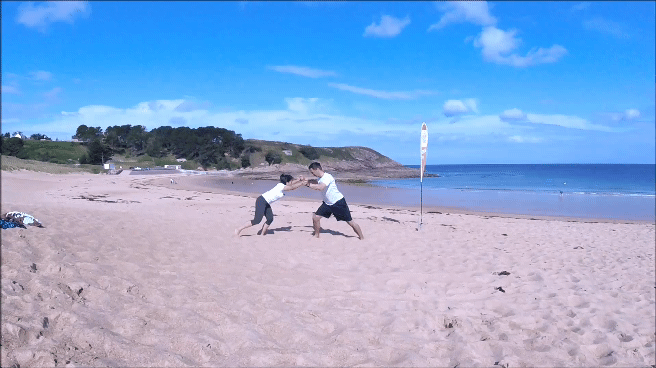 Debouts face à face, paumes contre paumes, pousser le Partner pour le faire reculer